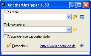 Sie wählen nach dem Start das zu entpackende Archiv, am besten über den Ordner-Schalter rechts.
